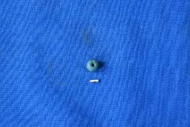 | Description / विवरण | A short-cylindrical shaped bead of glass in blue colour with a smooth surface and a perforation at the center. |