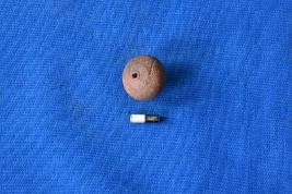 | Description / विवरण | An arecanut shaped bead of terracotta in red colour with a smooth surface and a perforation at the center. |