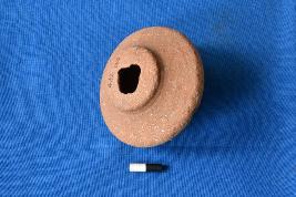| Description / विवरण | A circular shaped spindle whorl of terracotta in red ware with a perforation at the center. |