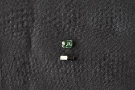 | Description / विवरण | A roughly rectangular shaped bead of green glass with a perforation at the center. |
