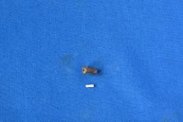 | Description / विवरण | A cylindrical shaped bead of bone with tapering sides, smooth surface and perforation at the center. |