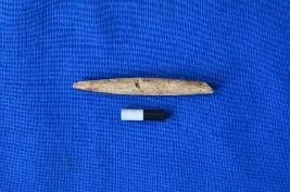 | Description / विवरण | A point of bone with a thick body in the middle and tapering on either sides with a smooth surface and the two pointed ends have been chipped off. |