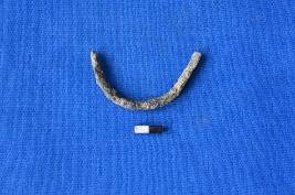 | Description / विवरण | Fragment of a copper bangle with a rectangular cross-section and corroded surface. |