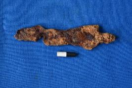 | Description / विवरण | An entirely corroded arrowhead of iron with holes in the arrowhead and it has a tanged portion for hafting. |