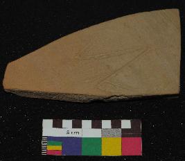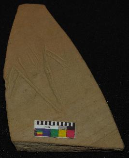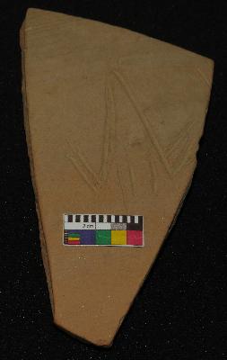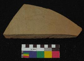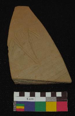 | Description / विवरण | Well fired, fragment of red ware pot is dull red in color, made of well levigated clay, having smooth surface and medium section. The graffiti is inscribed on the exterior part of the potsherd, it has an incised V sign with two oblique strokes of each side and the vertical lines inner part of V sign. |