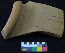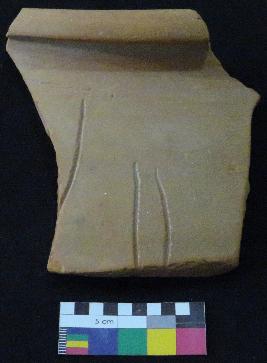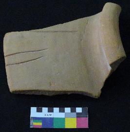 | Description / विवरण | Well fired, fragment of red ware pot is red in color, made of well levigated clay, have out-turned rim, small neck, smooth surface and medium section. The graffiti is inscribed on the exterior part of the potsherd. It has two vertical strokes and one oblique stroke on the left side. |
