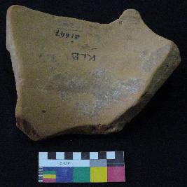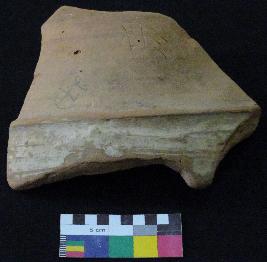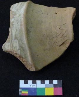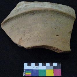 | Description / विवरण | Medium fired, fragment of red ware pot is dull red in color, made of well levigated clay, have carination, buff slip, smooth surface and medium section. The graffiti is inscribed on the exterior of the potsherd. It has incised four curved stokes and two vertical stokes. |