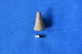 | Description / विवरण | A conical shaped pendant of terrcotta in red ware with a flat circular base and smooth surface. The top portion from the perforation is broken. |
