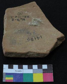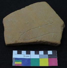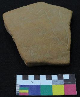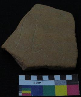 | Description / विवरण | Medium fired, fragment of red ware pot is red in color, made of well levigated clay, have smooth surface and medium section. The graffiti is inscribed on the exterior part of the potsherd. It has incised V sign and two pair of oblique lines. |