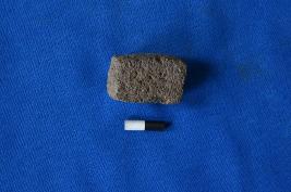 | Description / विवरण | Small rectangular shaped sponge tablet of terracotta showing porous surface, possibly used as weight. |