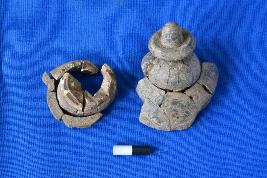 | Description / विवरण | Four fragments of a relic casket of ivory in black colour with a lid like a kalasha resting on the rim of the casket and some other fragments of lower portions, having a smooth surface. |