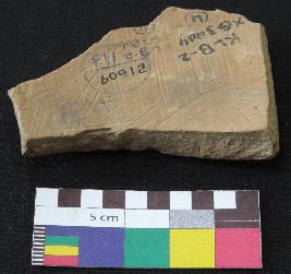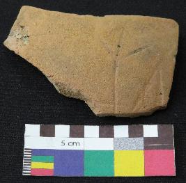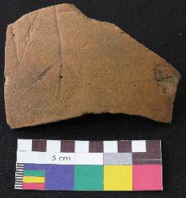 | Description / विवरण | Well fired, fragment of red ware pot is red in color, made of well levigated clay, have smooth surface and thin section. The graffiti is inscribed on the exterior part of the potsherd. |