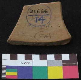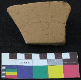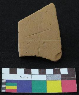 | Description / विवरण | Well fired, fragment of red ware pot is red in color, made of well levigated clay and have smooth surface and thin section. The graffiti is inscribed on the exterior part of the potsherd, it has two incised vertical lines, which are intersect by a horizontal line. |