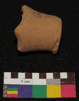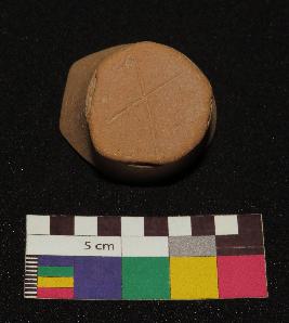 | Description / विवरण | Well fired, base of red ware pot is red in color, circular shaped, made of well levigated clay and have smooth surface and medium section. The graffiti is inscribed at the base, it has incised cross mark. |
