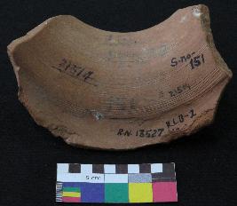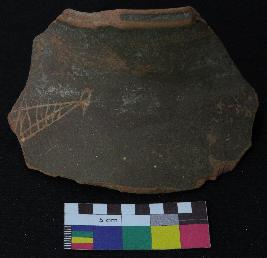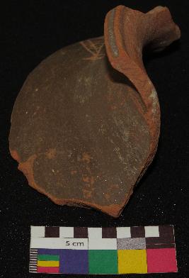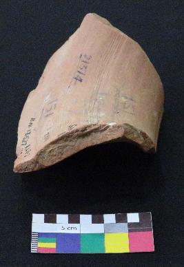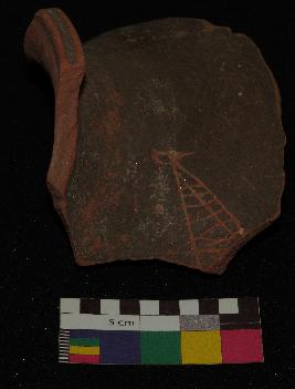 | Description / विवरण | Well fired, fragment of red ware pot is red in color with black color slip on outer surface of it, made of well levigated clay and have out turned rim, neck, smooth surface and thin section. The graffiti is inscribed on the exterior of shoulder part of the potsherd, the design seems like of an animal. |