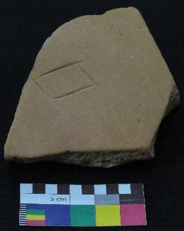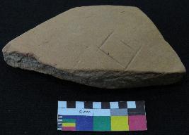 | Description / विवरण | Medium fired, fragment of red ware pot is red in color, made of well levigated clay and have smooth surface and medium section. The graffiti is inscribed on the exterior part of the potsherd, it has incised four lines which joint each other and form a rectangular. |