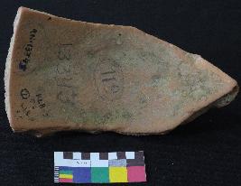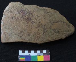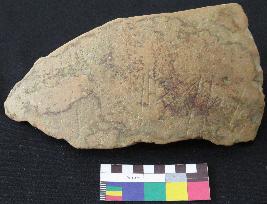 | Description / विवरण | Well fired, fragment of red ware pot is red in color, made of well levigated clay and have smooth surface and medium section. The graffiti is inscribed on the exterior part of the potsherd, it has incised series of double and triple lines. In the central two vertical parallel lines, which has pair two oblique strokes on each line follow by the pair of three oblique lines on each side. |