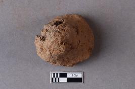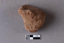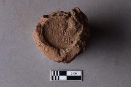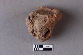 | Description / विवरण | Broken clay lump bearing an impression of a worn-out legend which is quite obliterated and other details are not clear. A knob is clear at the back. |