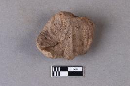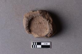 | Description / विवरण | Broken clay lump with the impression of a two-line legend that is weathered. Part of the lower portion is broken. The script is probably Siddhamatrika. It is yet to be deciphered. |
