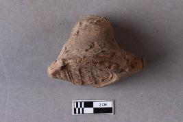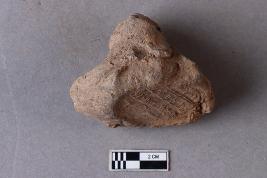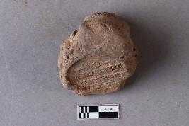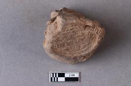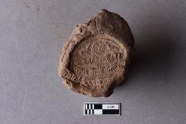| Description / विवरण | A clay lump bearing the impression of Mahavihara legend in two lines within a circular incuse, with the Chakra flanked by deer motif above and the lotus motif below. The details are very clear and lower, part of the sealing is broken and missing. This incuse was further counterstruck by a rectangular one bearing a single legend in the opposite direction. The back has a knob. The script is probably Siddhamatrika. It is yet to be deciphered. |