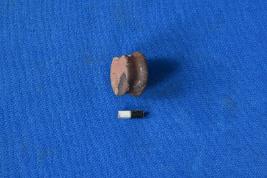 | Description / विवरण | A cylindrical biconcave shaped earstud in red and black colour with breakages at the edges, it also has a smooth surface. |
