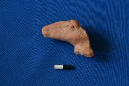 | Description / विवरण | A handmade terracotta head fragment of a horse in red ware with eyes, nose, and mouth, it has a fine workmanship and smooth surface. |