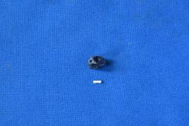 | Description / विवरण | A multifaceted bead of glass in blue colour with slightly chipped off surface and a perforation at the center. |