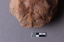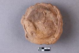 | Description / विवरण | Burnt clay lump bearing four incuses, all having impression of monastic legend (Mahavihara) with the chakra flanked by deer motif above. The script is Siddhamatrika. |