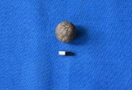 | Description / विवरण | A round shaped sling ball of terracotta in black cololur with a smooth surface. |