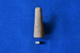 | Description / विवरण | A conical shaped gamesman in red ware with a fine fabric, flat circular base and depression at the top. |