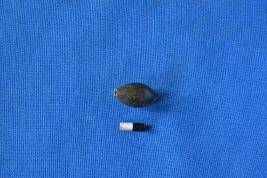 | Description / विवरण | A barrel shaped bead of jasper of Sunga-Bhadra period in deep green colour with a smooth surface and perforation at the center. |
