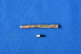 | Description / विवरण | A rod like point or needle of bone with a smooth surface and pointed end on one side and broken from the other. |