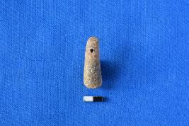 | Description / विवरण | A cylindrical shaped pendant of terracotta in red ware with a transverse perforation near the top and flattish top. |