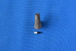 | Description / विवरण | A cylindrical shaped gamesman of terracotta in black-grey colour with tapering sides, flat circular base, depression at the top and a smooth surface. |