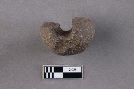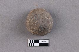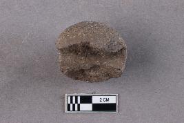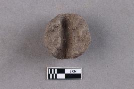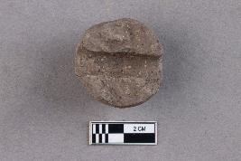 | Description / विवरण | The vertical half of a spherical grey terracotta bead with central drilling. The drill pattern inside the bead is cylindrical. |