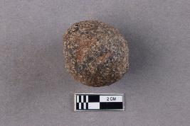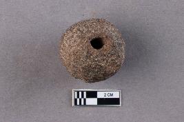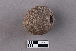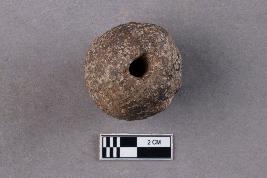 | Description / विवरण | An irregularly spherical terracotta bead with a central perforation is seen. |