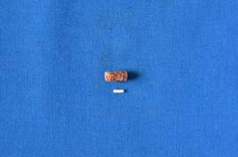 | Description / विवरण | A cylindrical shaped bead of carnelian in red colour with hexagonal and pentagonal designs and two transverse lines on the two edges with a dot each side etched in white over the surface. |