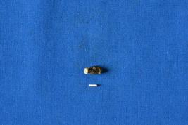 | Description / विवरण | A double collared barrel shaped bead of copper with corroded surface and a perforation at the center. |