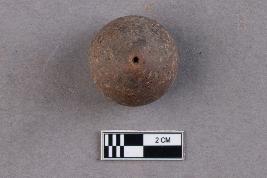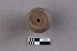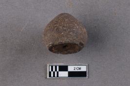 | Description / विवरण | An areca nut-shaped terracotta bead with top-drilled perforation. |