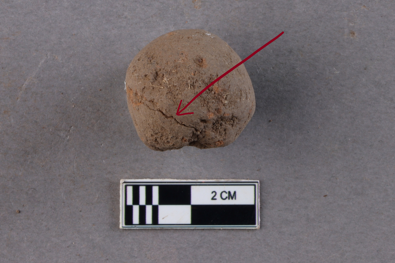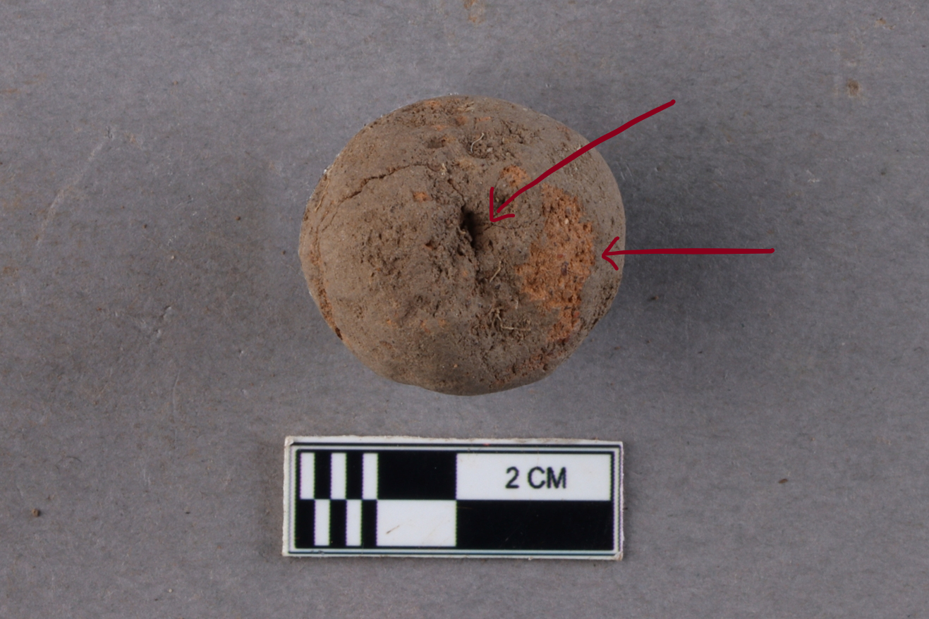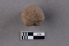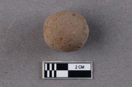 An irregular sphere of terracotta that probably functioned as a sling ball.