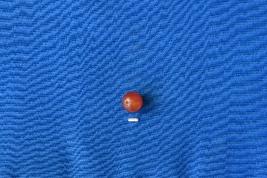 | Description / विवरण | A spherical shaped bead of carnelian in red colour with a smooth surface and perforation at the center. |