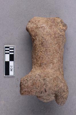 | Description / विवरण | A terracotta animal figurine with extended hind limbs that are broken, an elongated torso and evidence of forelimbs that are also broken and missing, and a short tail at the back. |