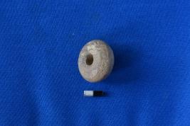 | Description / विवरण | An arecanut shaped bead of terracotta in red ware, made with a very finely levigated clay and the surface is also very smooth with a perforation at the center. |
