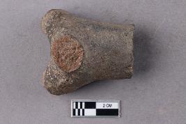 | Description / विवरण | A front portion of an animal figurine with a broken head and broken forelimbs. It is grey in colour. |
