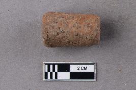 | Description / विवरण | A solid terracotta cylinder that slightly tapers towards one end and has rolled edges. It is red in colour. |