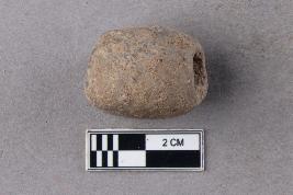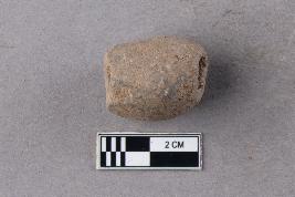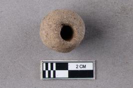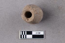 | Description / विवरण | An irregularly barrel-shaped terracotta bead with central perforation. It was perhaps hand-rolled owing to its shape. |