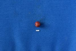 | Description / विवरण | A spherical shaped bead of chert in red colour with a smooth surface and perforation at the center. |