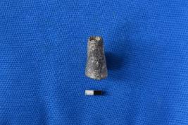 | Description / विवरण | A stopper of terracotta in black colour with a smooth surface, a depression on the top and a circular flat base. |