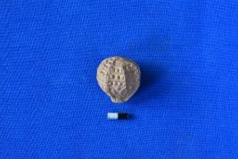 | Description / विवरण | A knob of a lid of terracotta made in a mould. The knob has eight facets and embossed dots shown in a horizontal fashion in a uniform manner. |