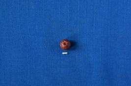 | Description / विवरण | A spherical shaped bead of chert in red colour with a perforation at the center and a smooth surface. |